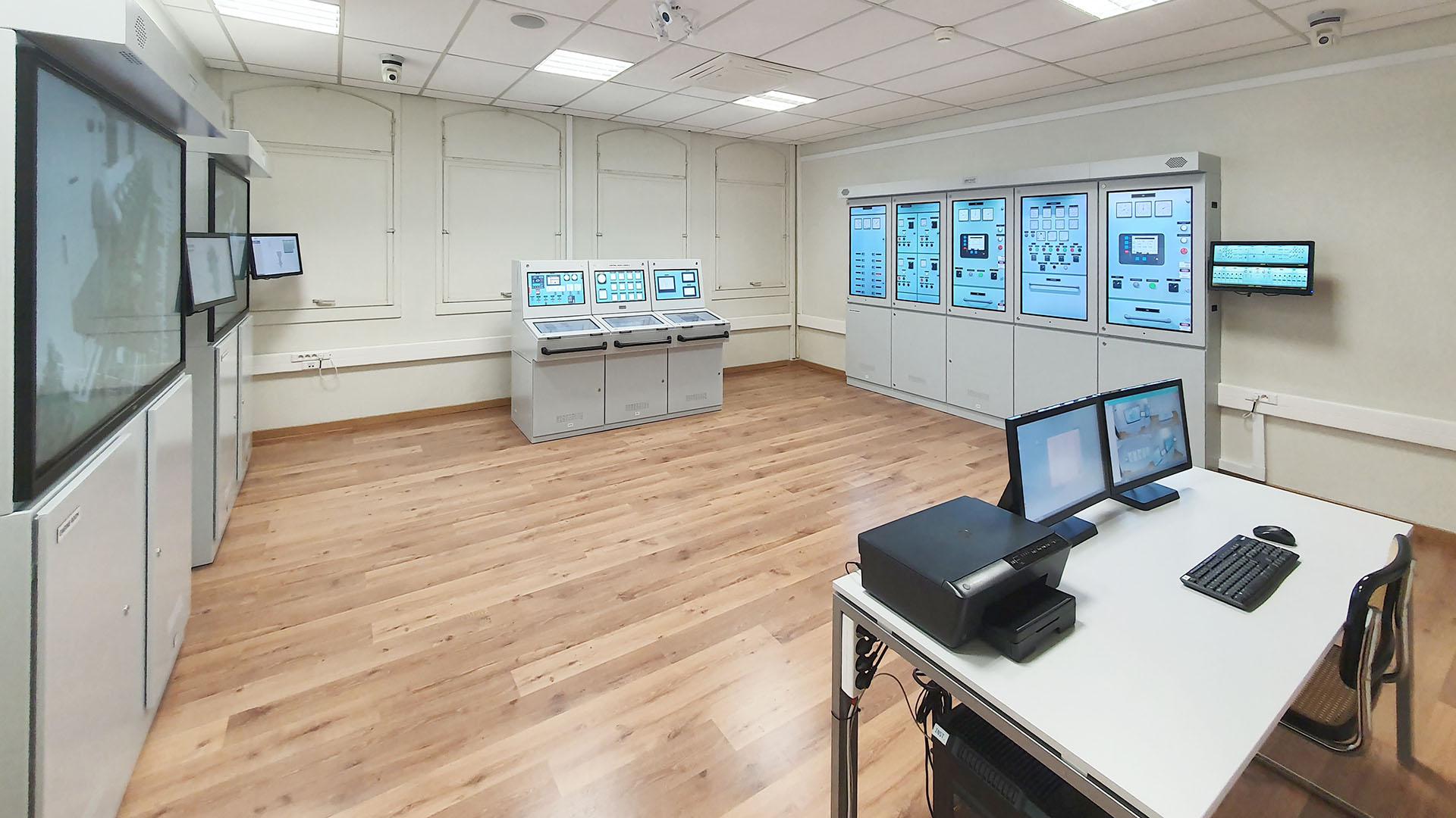 - Set of 5 touchscreen monitors (43″) in vertical position for electrical switchboard simulation;