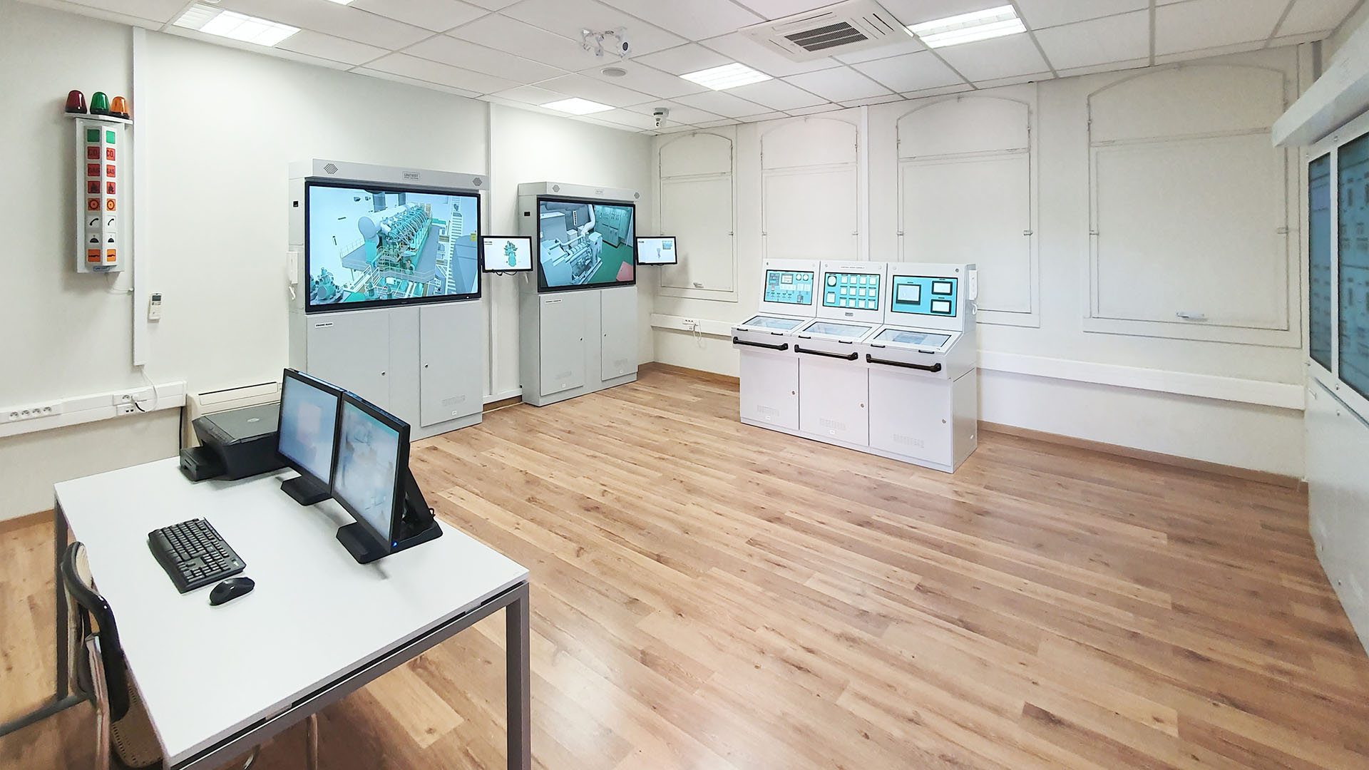 The simulator provides a realistic, ship-like environment based on real hardware consoles and high quality 3D presentation. The systems include vital components, such as main engine local and remote control, engine telegraphs, engine room local panels, integrated automation system, etc.
